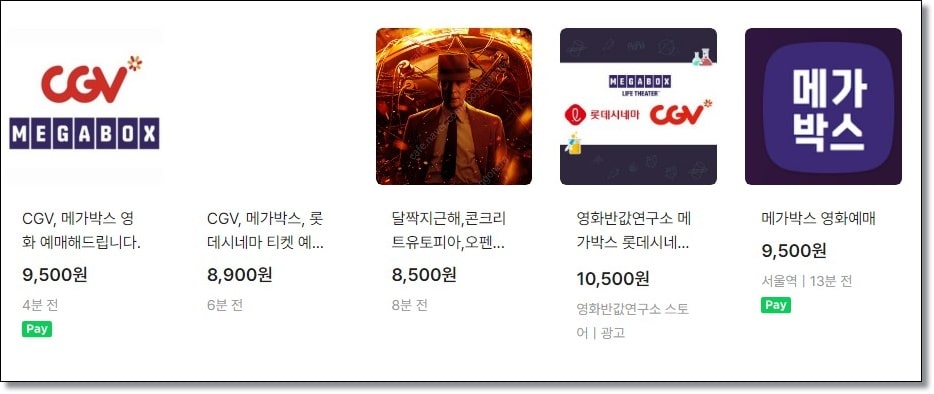 중고나라나 번개장터에 메가박스를 검색하면 대리 예매로 원가보다 싸게 예매가 가능합니다. 보통 일반관의 경우 9000~9500원 / mx관 12500원 / 커플석 12000원 정도로 대리 예매가 가능합니다. 저도 처음에는 사기인줄 알았는데 진짜 예매를 해줍니다. 하지만 어디에나 사기꾼은 존재하기 때문에 조심하셔야 합니다.